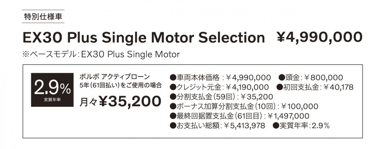 特別仕様車 EX30 Plus Single Motor Selectionが登場しました。